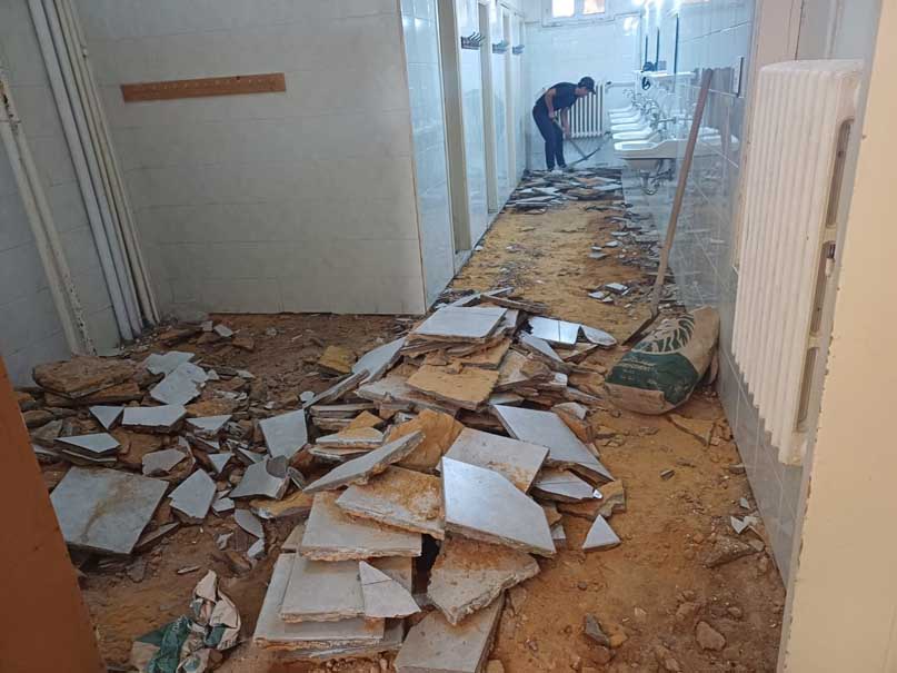 In der Schule St. Vinzenz der Schwestern von Besançon in Baskinta im Libanongebirge werden dzt. die im Libanon noch länger andauernden Sommerferien genützt, um die völlig desolaten Sanitärräume auf beiden Etagen des Internatstraktes von Grund auf zu sanieren und zu modernisieren.